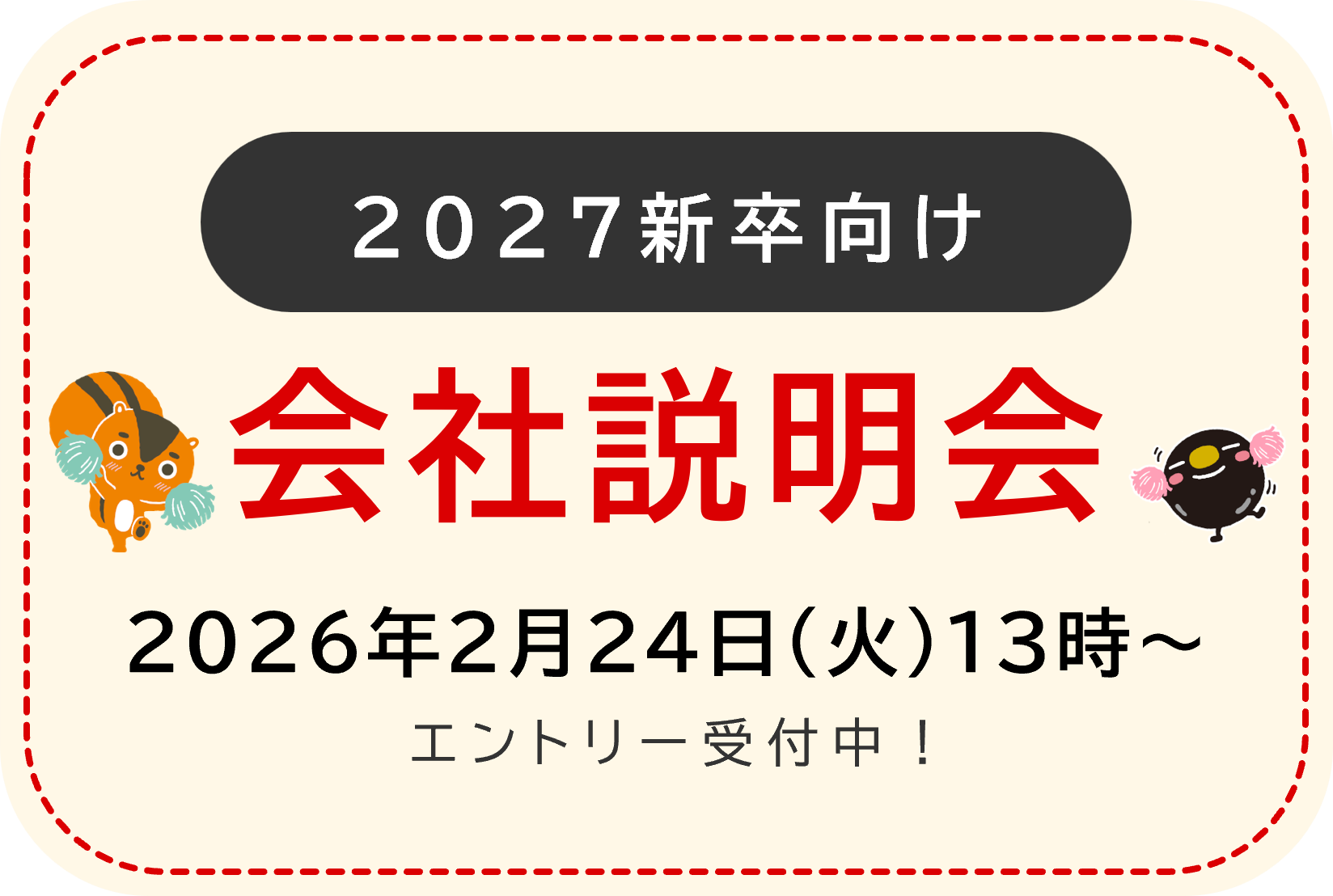 ▼実施内容 会社紹介/仕事紹介/福利厚生/質疑応答/27新卒 採用情報/先輩社員との座談会