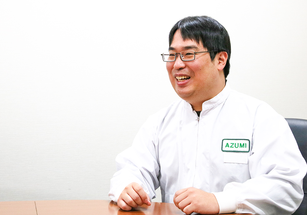 最初に配属されたのは松本工場の生産技術職で、ゼリーを作る現場の管理や人の管理をしていました。ちょうど1年半くらい前に品質管理の方が定年退職をされることになったので、「製造の現場を知っているから」ということで私に声をかけていただいたんです。